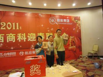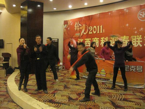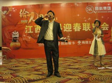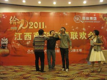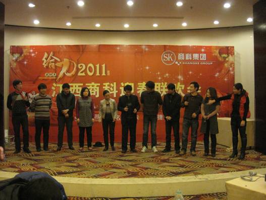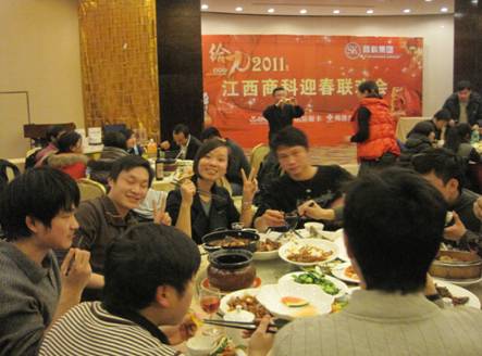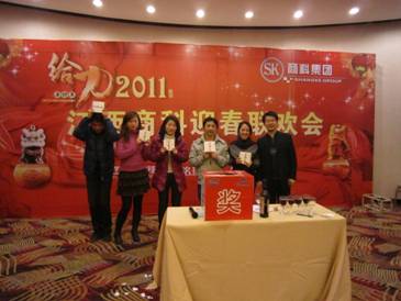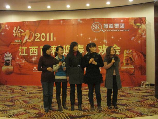 2011年元月28日,江西商科2011年春節(jié)聯(lián)歡會如期在南昌百瑞麗景18樓百瑞廳舉行。 聯(lián)歡會分為三部分:文藝表演、晚宴、抽獎。 猛虎辭舊歲,玉兔迎新春;冰雪封不住青春的熱情,2011正隨春潮滾滾而來,希望所有的同事能在兔年里心想事情,事事順利。