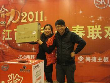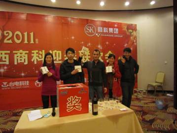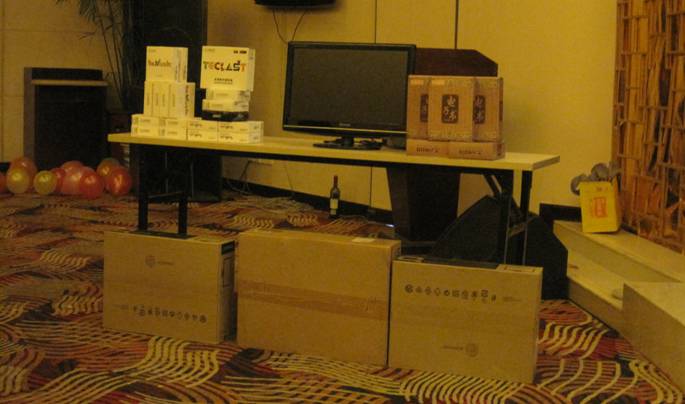 年會抽獎品:液晶電視、顯示器、電子書、臺電數(shù)碼播放器、電話卡、臺電攝像頭。。。。。,很豐富呀,