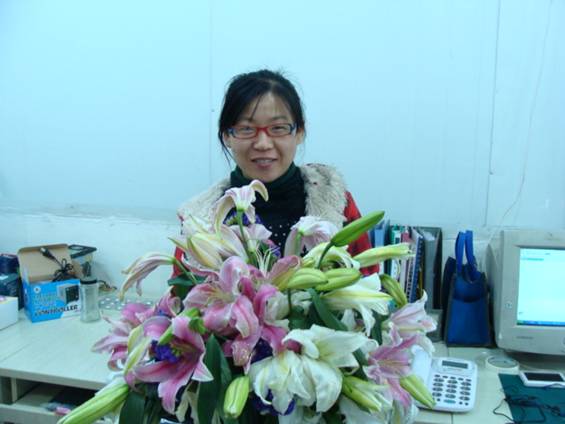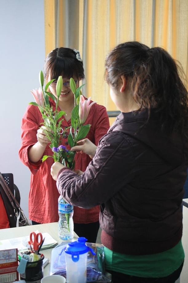 在今天,男同事們向平時(shí)與他們工作密切銜接的女同事獻(xiàn)花,向她們表示深深的謝意。感謝她們平時(shí)的配合和支持!