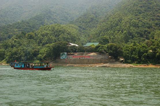 11:00多終于到達(dá)了清遠(yuǎn),導(dǎo)游先安排飛來(lái)寺沿江觀景,游船上進(jìn)餐;聽(tīng)導(dǎo)游說(shuō)飛來(lái)寺燒香拜佛有點(diǎn)投機(jī)取巧,誆人錢(qián)財(cái)?shù)奈兜溃匝亟^看并未入寺拜佛,呵呵。!熬迫獯┠c過(guò),佛祖心中留。!