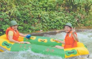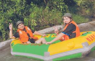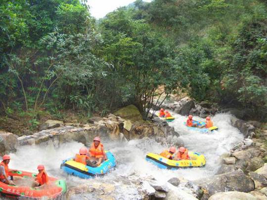 漂流河道設(shè)計(jì)者,巧奪天工,河道順山勢(shì)無(wú)盡曲折旋回,漂流舟高高躍起,左右回旋,扎入水中,又高高躍起,又高低回旋扎入水中……讓漂流者充分享受竄上云霄,極速墜地的刺激有驚無(wú)大險(xiǎn)!不過(guò)感覺(jué)最爽最刺激還是中游處的黑隧道電閃漂!