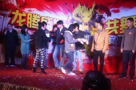孫總為大家抽取現(xiàn)金大獎(jiǎng),興奮的同事們狂奔上舞臺(tái)