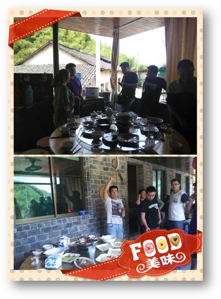 經(jīng)過(guò)三個(gè)半小時(shí)的車程,中午時(shí)分,終于來(lái)到了第一天的目的地---龍王山峽谷漂流。當(dāng)然啦,對(duì)于一群吃貨而言,漂流之前肯定得飽餐一頓啦,為此,我們選擇了當(dāng)?shù)馗浇囊患肄r(nóng)家樂(lè),吃上了健康的有機(jī)綠色食物。在安吉,竹筍是每家每戶每餐必不可少的一道菜,在旅途的這兩天中,我們每餐的竹筍都是不一樣的,做法吃法各式各樣,但頓頓都是極其美味,極受歡迎,LOOK,我們上分都是“光盤”一族哦,表?yè)P(yáng)表?yè)P(yáng)~~~