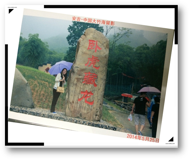 旅行的第二天,我們?cè)趽?jù)說(shuō)有大雨的天氣中開始了我們的行程。一路上,雨,忽停忽下,有時(shí)還傾盆而下連綿不斷。雖然天公不作美,但我們游玩的心情不減反增,相信在雨中更能體會(huì)到大自然的樂(lè)趣,為此,我們便來(lái)到了電影《一代宗師》的拍攝地點(diǎn)之一------大竹海。既然是這么有意義的地方,當(dāng)然少不了來(lái)一張“全家!笨。