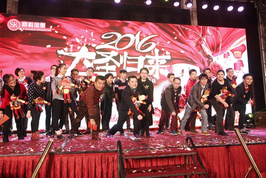 火眼金睛,鴻福齊天!廣州商科信息科技有限公司迎春盛宴之“2016 大圣歸來——商科迎春晚會暨年度優(yōu)秀表彰大會”于2016年1月23日下午在廣州嘉逸皇冠酒店3樓舉行。