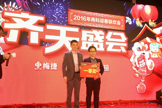 商科總經(jīng)理孫武安先生首先為大家獻(xiàn)上新年祝詞。宴會開始進(jìn)入第一環(huán)節(jié)“大圣歸來 勇挑重?fù)?dān)”——年度優(yōu)秀員工頒獎盛典。公司為在過去的2015年里辛勤為商科默默奉獻(xiàn)、表現(xiàn)優(yōu)異的員工頒發(fā)榮譽勛章,每位獲獎人員都獲得了獎狀和豐厚的獎金。