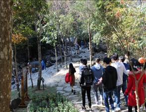 下午我們來到了享有“南國仙山”美譽(yù)的姑婆山,姑婆山分布有仙姑寨、仙姑大草坪、仙姑瀑布、天堂頂、九天峽谷、情人林、古窯沖和方家茶園八大主題景區(qū),內(nèi)含茶壽石、聚寶盆、仙人指路、八步仙蹤等88處神奇景觀,久聞四季宜人,萬物共榮。森林覆蓋率高達(dá)99.55%,負(fù)離子含量高達(dá)15萬個/cm³,我們吸氧來啦!