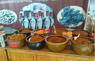 小鎮(zhèn)的街道建筑古色古香,青灰石板小路?赡苁且驗槲覀儼滋斓剑慰秃苌,目光所到大多是年邁的老人,少量的商鋪開著門,賣著醬菜,糯米酒、桂花香、青梅酒等釀酒,很多酒吧大門緊閉。