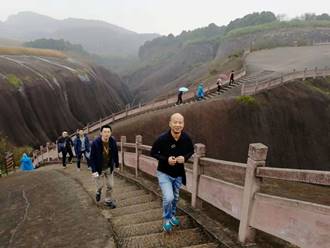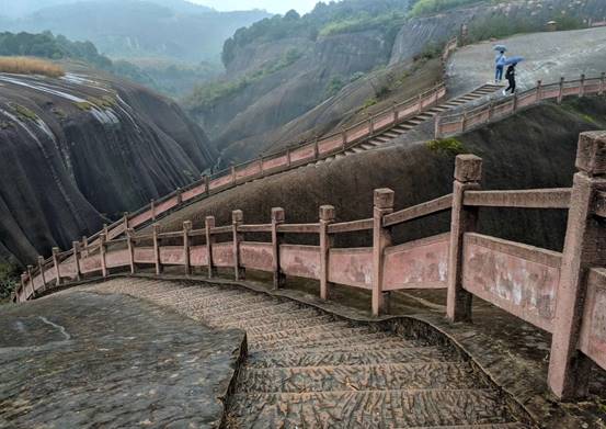 在微雨的郴州我們迎來十二月的第一天?諝鉂駶,氣溫微涼,讓人神清氣爽。乘坐大巴車來到古代著名旅行達人徐霞客打卡的飛天山。他曾贊嘆飛天山“無寸土不麗,無一山不奇”,境區(qū)山頂相連,溝壑縱橫,山環(huán)水繞,寨坦錯落,精巧處如精雕細琢,巧奪天工,宏偉處如橫空出世,壯志凌云。