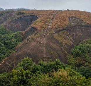 雖然以己經(jīng)是12月份入冬時節(jié),飛天山景色更似深秋。歷經(jīng)打磨的臺階,奇特的丹霞地貌,手中的一顆狗尾巴草,雨水浸潤的落葉。