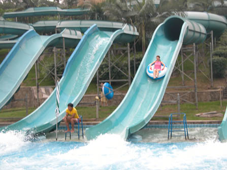 據(jù)不可靠的資料記載,此滑水道有七層樓那么高,也就是大概在25米左右,最高出和接地處據(jù)本人不完全的統(tǒng)計是成110度角,當你站到最頂點的高臺上的時候,要往下滑的的時候需具有大智大勇的氣魄; 大智,站在上面的時候,千萬的不要往下看看有多高,不然就肯定把你滑下去的決心減低到百分零點幾。(呵呵,說得有點夸張了,別給我嚇到),大勇,其實就是懵懵懂懂的沖下去,根本就不知道自己干了些什么之類的。