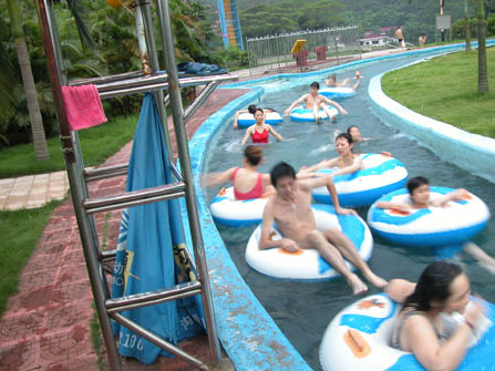 這個項目是一個由七七四十九轉(zhuǎn)而做成了一個小河,人坐在水圈上面,隨波慢慢的瓢流,人生美哉。大家在上面可以跟一些相識的或不相識的人一起潑水或者是玩鬧,非常的不錯。
