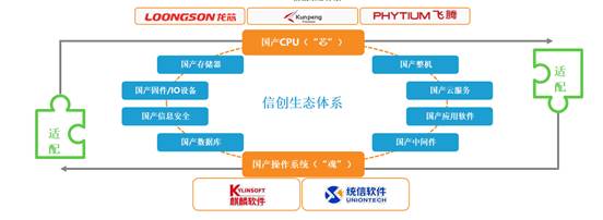 因此,在“十四五”的政策支持下,圍繞國產(chǎn)通用計算平臺,聯(lián)合產(chǎn)業(yè)鏈相關(guān)的創(chuàng)新力量的信息技術(shù)應(yīng)用創(chuàng)新產(chǎn)業(yè)的生態(tài)體系就逐漸成型。產(chǎn)業(yè)布局以國產(chǎn)CPU(海光、龍芯、鯤鵬等)作為核“芯”,加上國產(chǎn)操作系統(tǒng)(麒麟、統(tǒng)信等)作為“魂”,中間適配整機(jī)、儲存、IO、數(shù)據(jù)庫、中間件、云服務(wù)應(yīng)用軟件等等。讓信息時代新基建不僅自主可控與安全,而且還能反向推動產(chǎn)業(yè)發(fā)展,形成閉環(huán)。