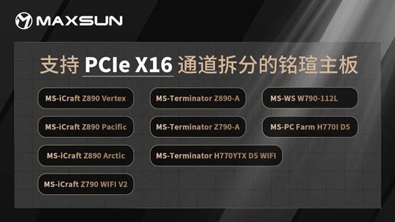 MAXSUN Intel Arc Pro B60 Dual 48G Turbo采用PCIe5.0 X8+PCIe5.0 X8接口設(shè)計(jì),只需主板支持PCIe X16 通道拆分為 X8+X8,即可在消費(fèi)級平臺上實(shí)現(xiàn)高效運(yùn)行,大幅降低部署大模型的整機(jī)成本。銘瑄多款主板支持PCIe X16通道拆分,助力顯卡雙芯性能滿血釋放,真正實(shí)現(xiàn)性價比之選,讓更多用戶能夠擁抱本地大模型。