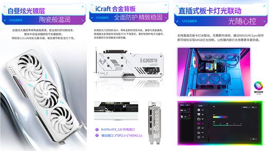 值得一提的是,MAXSUN Intel Arc B580 iCraft 12G還支持直插式板卡燈光聯(lián)動,無需額外線材,通過MAXSUN Sync軟件即可實(shí)現(xiàn)ARGB燈光控制,光隨心控,打造氛圍感拉滿的電競空間。每一次開黑對戰(zhàn),都能在光影流轉(zhuǎn)中感受電競的熱血與激情,細(xì)節(jié)之處盡顯個性與活力。