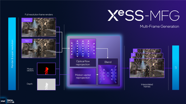 值得期待的是MAXSUN Intel Arc B580 iCraft 12G顯卡對英特爾即將上線的XeSS 3多幀生成技術(shù)的高度適配。作為XeSS技術(shù)的重磅升級,XeSS 3的多幀生成技術(shù)基于AI驅(qū)動,通過在原有兩幀畫面之間額外插入三幀AI生成圖像,實(shí)現(xiàn)輸出幀率提升至原始水平的4倍。在提升流暢度的同時,有效減少了低幀率環(huán)境下常見的畫面撕裂與偽影問題,《三角洲》中的高速轉(zhuǎn)移、準(zhǔn)確射擊體驗(yàn)將再上一個臺階。