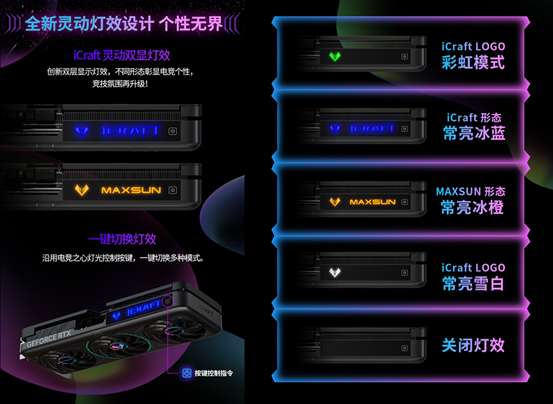 全新 iCraft 靈動(dòng)雙顯燈效更是點(diǎn)睛之筆,多種燈光形態(tài)可自由切換,搭配一鍵模式切換功能,能打造專屬電競氛圍,讓你的主機(jī)在眾多裝備中脫穎而出,成為全場焦點(diǎn)。接口方面,DP*3+HDMI 的全接口組合,支持多顯示器連接,輕松滿足不同顯示設(shè)備的使用需求,無論是游戲?qū)?zhàn)還是日常辦公,都能無縫適配。