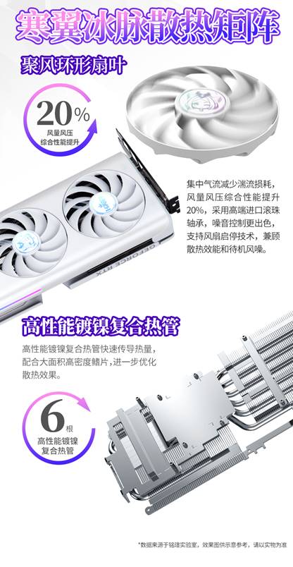 銘瑄 GeForce RTX 5070 iCraft OC12G 璦珈顯卡配備了寒翼冰脈散熱矩陣,為顯卡的穩(wěn)定運(yùn)行保駕護(hù)航。散熱系統(tǒng)采用聚風(fēng)環(huán)形扇葉設(shè)計(jì),集中氣流減少湍流損耗,風(fēng)量風(fēng)壓綜合性能提升 20%,搭配高端進(jìn)口滾珠軸承,噪音控制更出色。多風(fēng)扇與高性能鍍鎳復(fù)合熱管強(qiáng)強(qiáng)聯(lián)合,能夠快速導(dǎo)出核心高熱量,配合大面積高密度鰭片,進(jìn)一步優(yōu)化散熱效果。即使顯卡長(zhǎng)時(shí)間處于高負(fù)載運(yùn)行狀態(tài),也能持續(xù)穩(wěn)定輸出性能。此外,顯卡還支持風(fēng)扇啟停技術(shù),待機(jī)時(shí)風(fēng)扇停止轉(zhuǎn)動(dòng),實(shí)現(xiàn)靜謐無聲;游戲時(shí)風(fēng)扇自動(dòng)啟動(dòng),全力散熱,完美平衡了散熱效能與待機(jī)靜謐性。在接口方面,顯卡配備了 DP*3+HDMI 的全接口組合,無論是連接 4K 顯示器,還是搭建多屏沉浸場(chǎng)景,都能輕松適配,滿足不同玩家的使用需求。