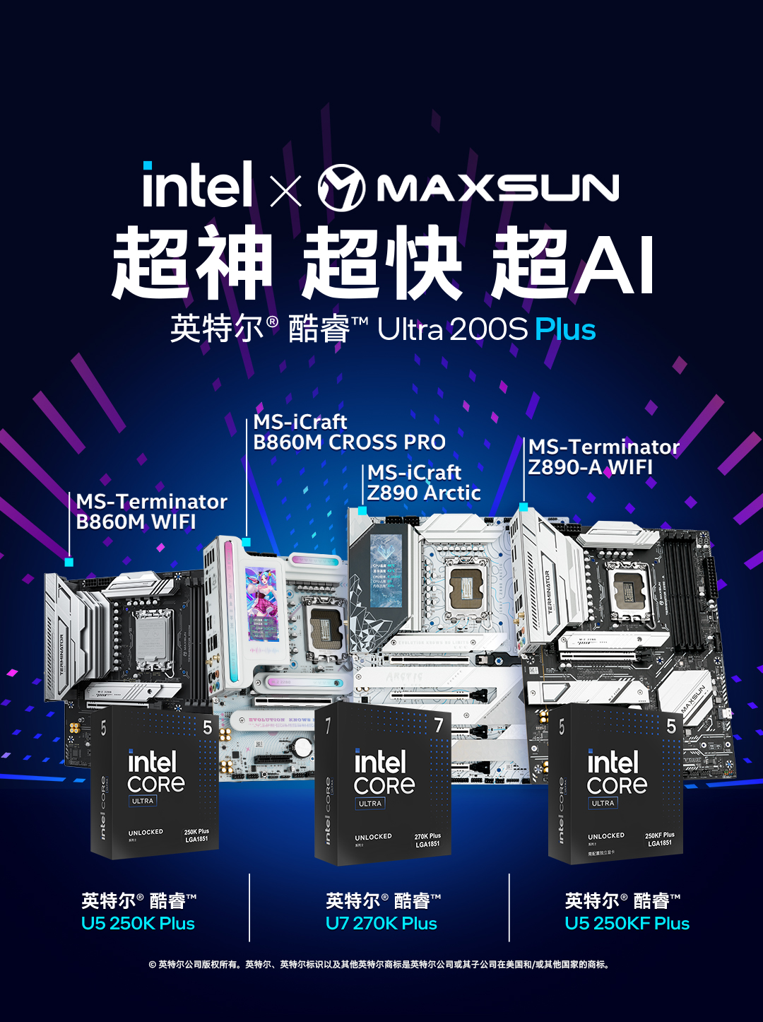 從 Z890芯片組的旗艦款到 B860M芯片組的個(gè)性之選,銘瑄 Intel 800系列這四款主板各有特色,全場景覆蓋硬核玩家、顏值個(gè)性化愛好者、實(shí)用型用戶等不同群體的裝機(jī)需求,盡顯銘瑄旗艦主板的無邊戰(zhàn)力。英特爾酷睿 Ultra 200S Plus 系列處理器已全面開售,選擇一款適配的銘瑄 Intel 800 系列主板,即可充分解鎖新芯滿幀戰(zhàn)力,從容迎戰(zhàn)游戲、創(chuàng)作、辦公等各類使用場景,開啟顏值與性能雙在線的硬件全新體驗(yàn)!